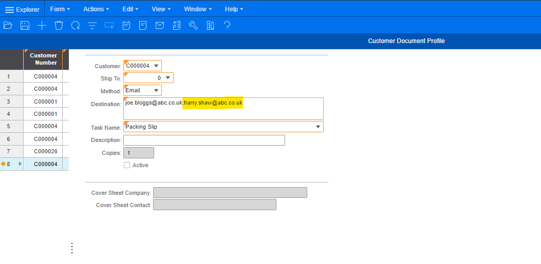 So in this example, Harry Shaw has been added in to the circulation of the packing slip for Customer ID C000004.