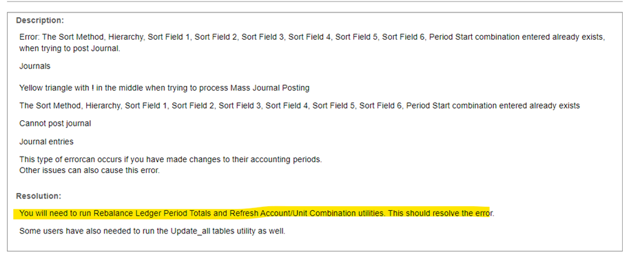 CSI Displays an Error message when posting a journal - Finance Troubleshooting