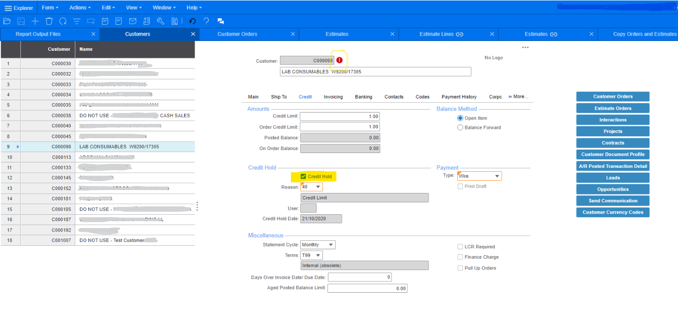 How to identify a Customer Order that is on credit hold Tip - Customers